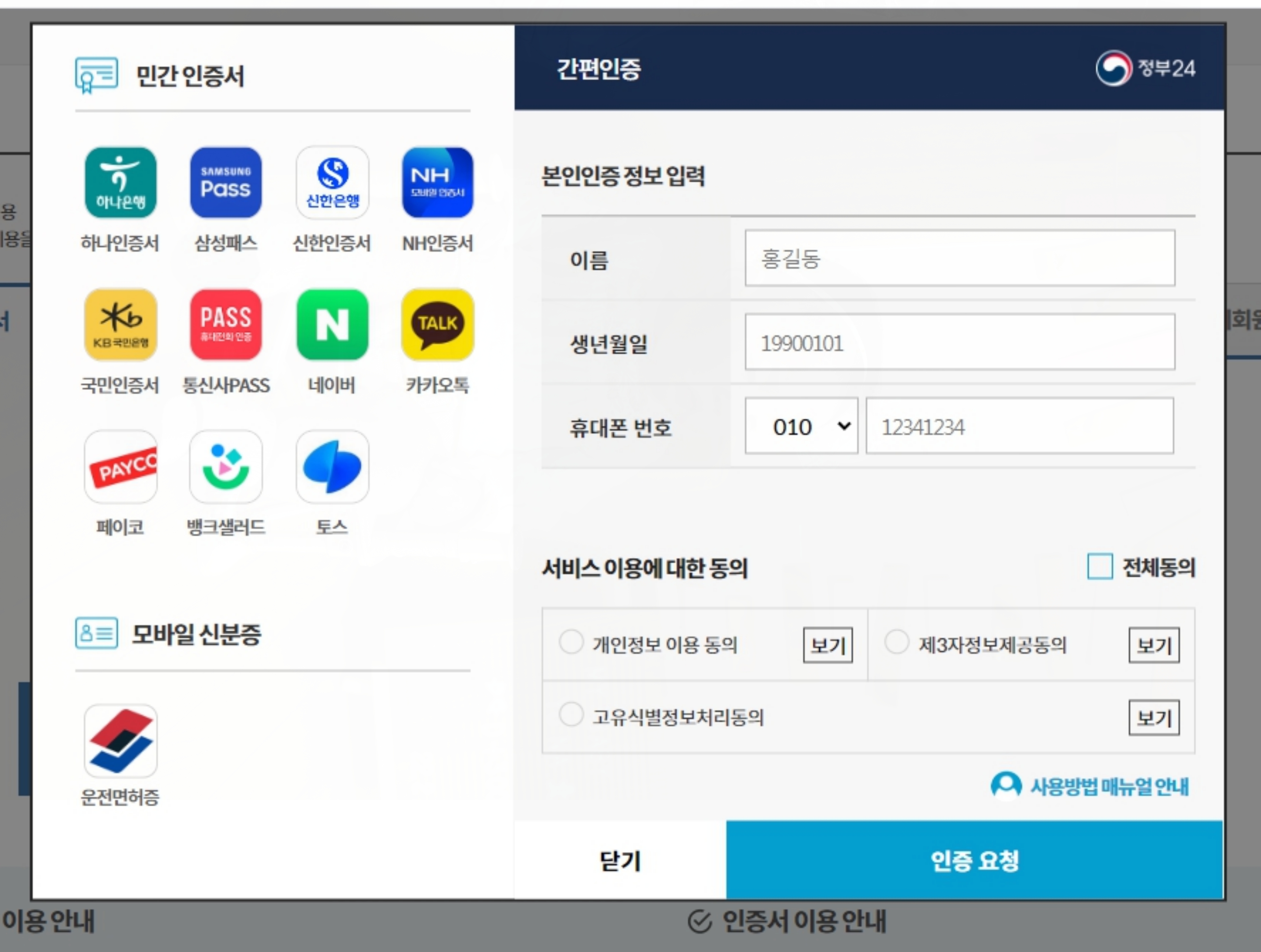 인증절차를 거친후 하시면 되는데 요즘은 인증도 간편으로 우리가 자주 이용하는 카카오톡과 토스등으로 가능하여 더욱 빠르고 편리해졌습니다.