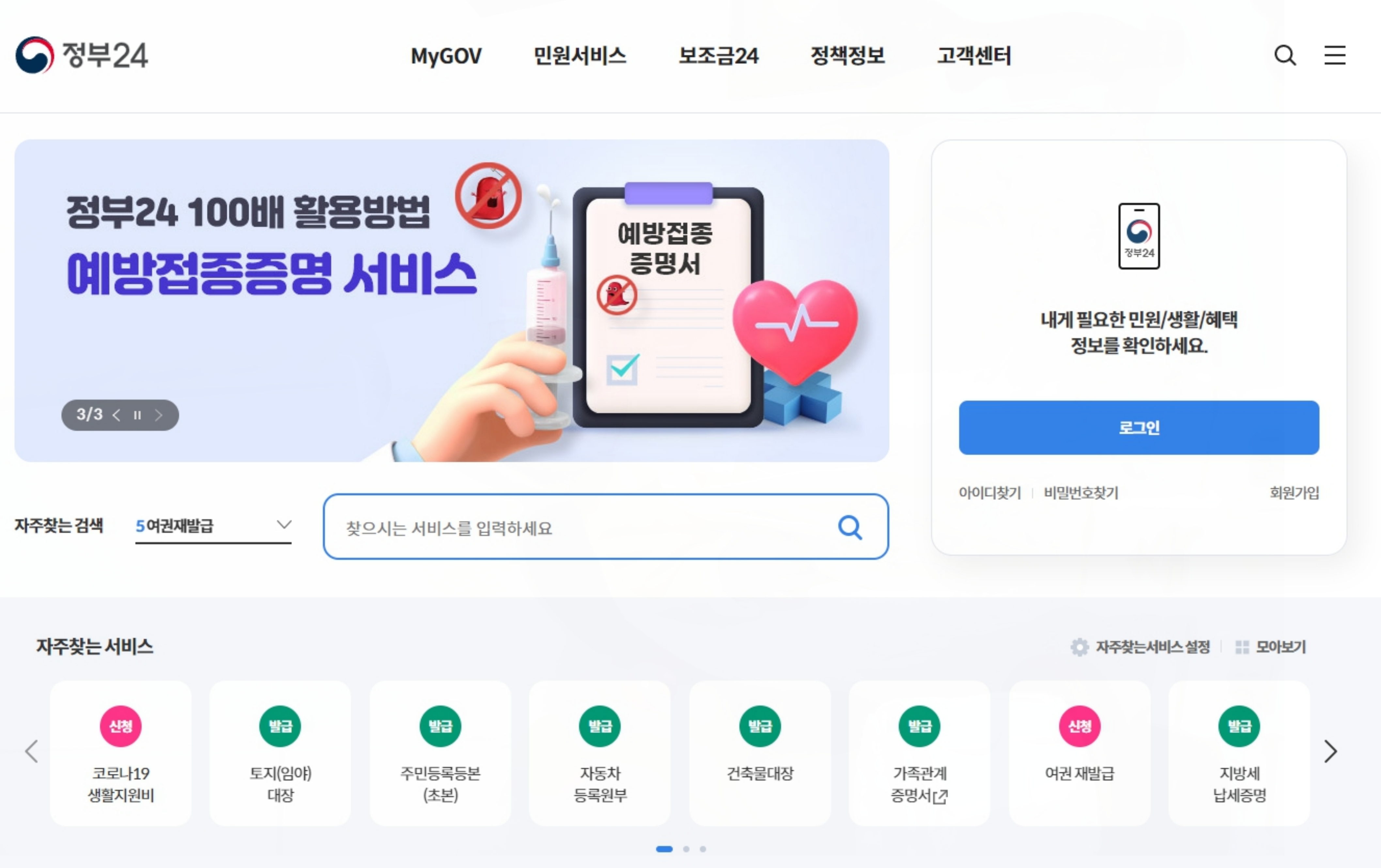 정부 24 사이트를 자주 이용하신다면 회원가입 후 이용하시면 조금이라도 시간을 단축시키실 수 있습니다.